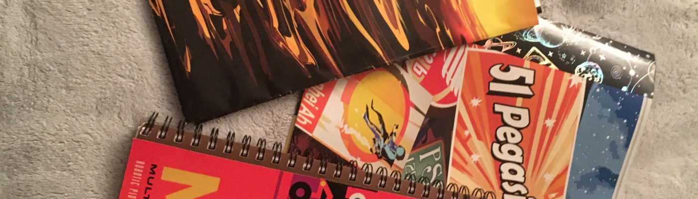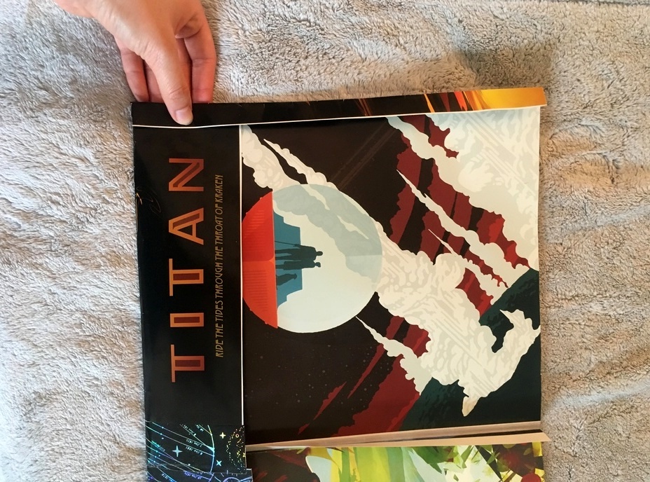 And I definitely don’t like throwing away super awesome space tourism posters from my 2018 calendar I impulse bought at a bookstore. (No regrets. While I can’t find the calendar, I was able to find the amazing graphics featured within here.) Anyway, with the stack of pretty pages on my desk for far too long and far too much time on my hands (thanks, lockdown!), I decided to get busy and see how I could repurpose those pages.