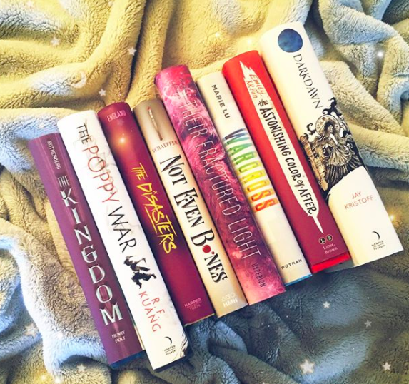 Some of my favorite books are included in this picture, including NOT EVEN BONES for those who love morally gray characters, WARCROSS by the legendary Marie Lu, and THE ASTONISHING COLOR OF AFTER that hits home as a first-gen Taiwanese American.